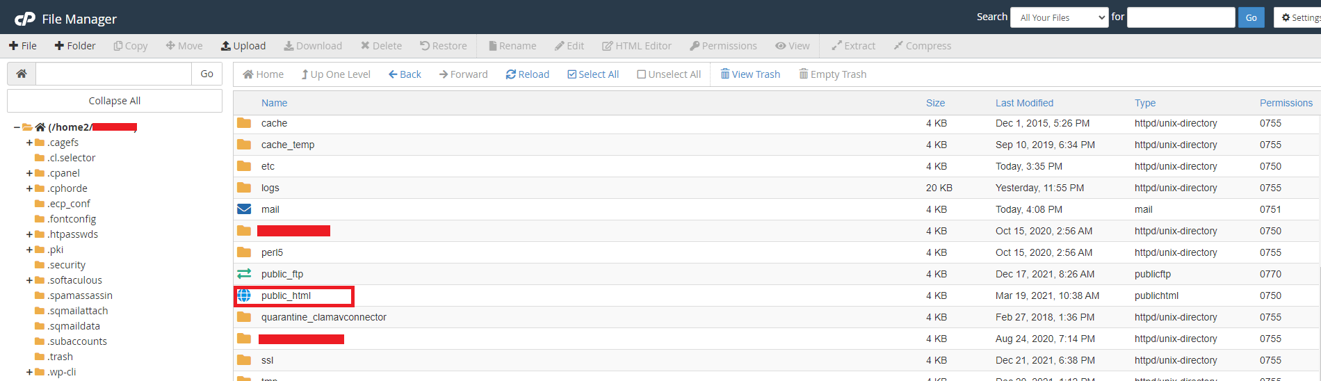 8. Go to public_html or public_html/yourDomain.in folder in the file manager, whichever folder your domain points to.