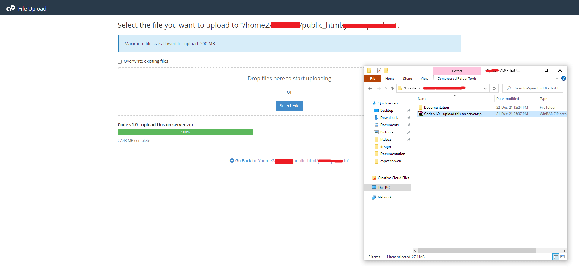 9. Upload the downloaded zip in public_html or public_html/yourDomain.in folder.