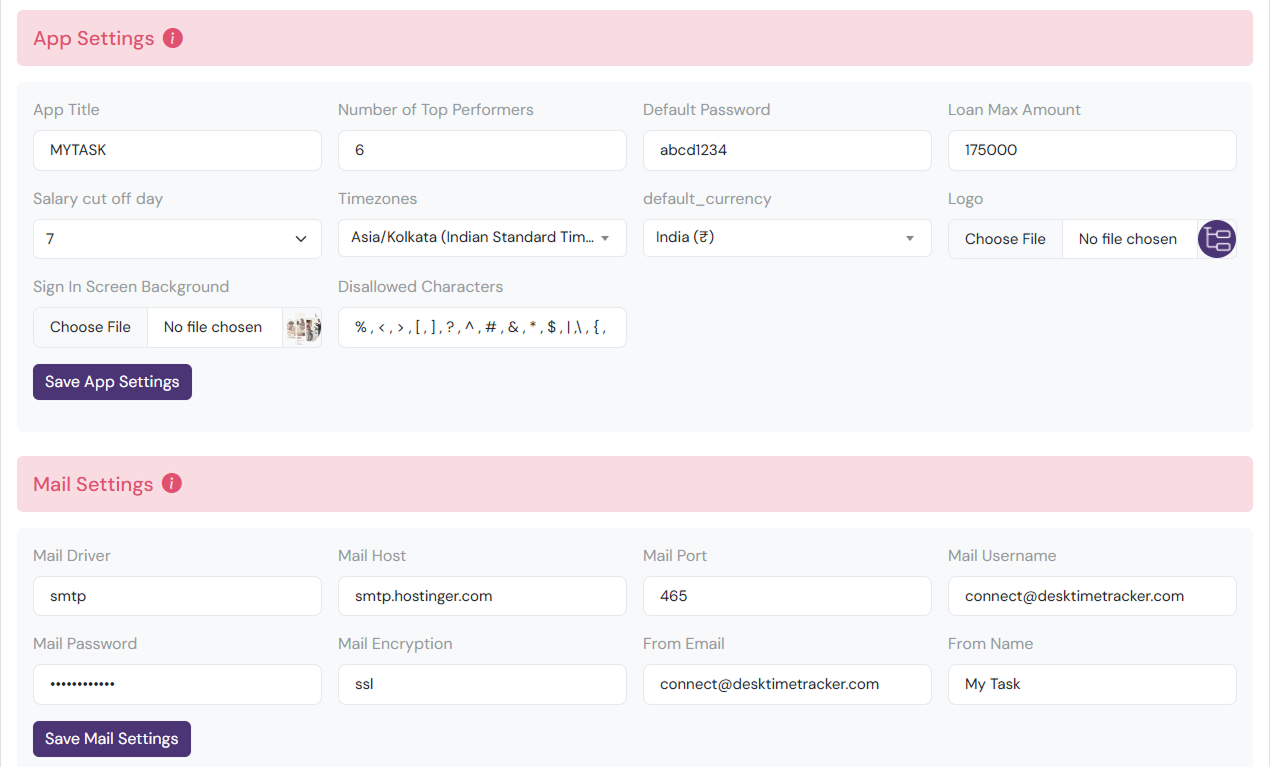 Mail Password: ••••••••••••