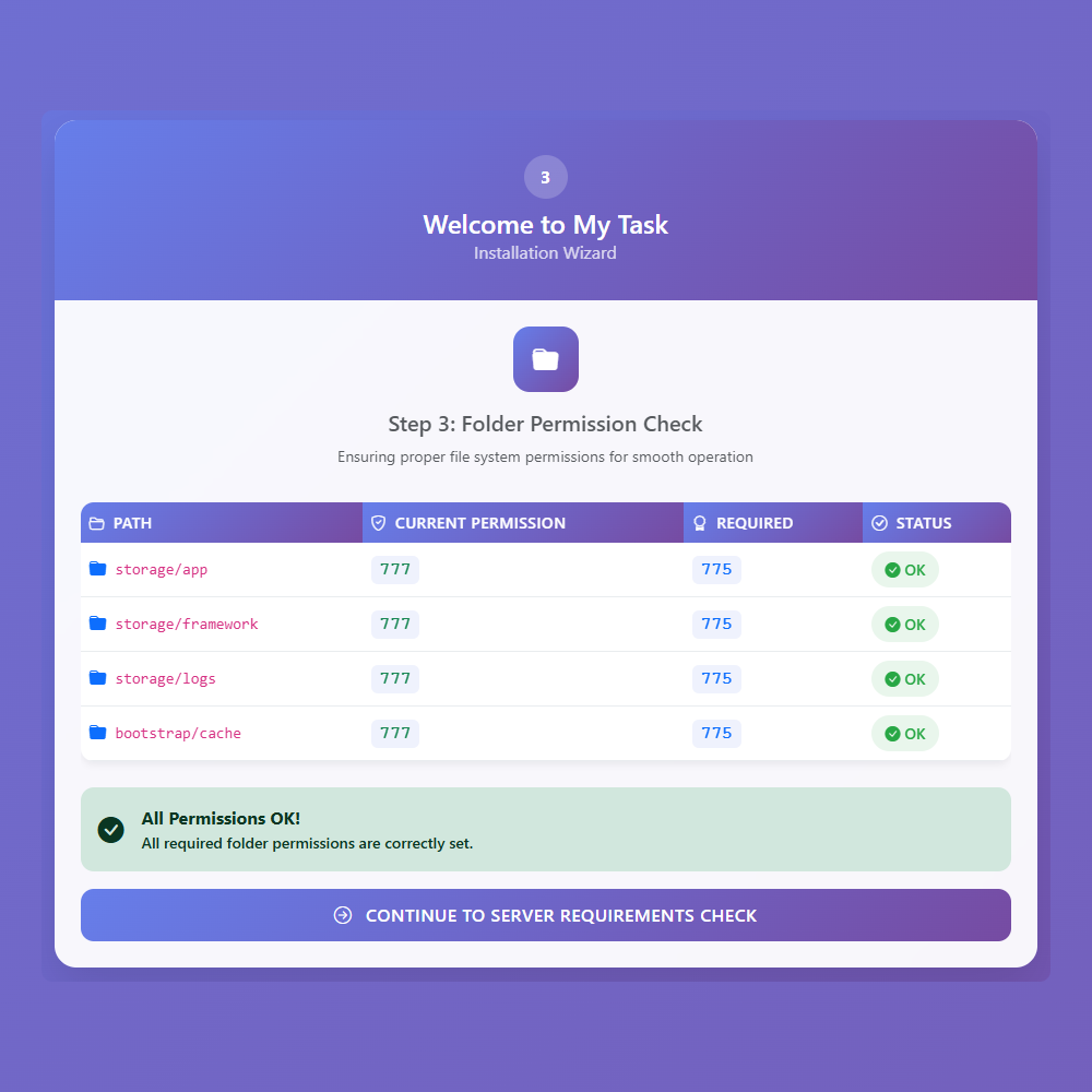 Ensures Laravel can write cached files in the storage/framework directory. This is required for sessions and compiled views.