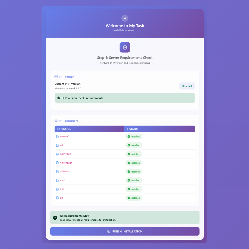 PHP Version : Must be 8.2 or higher.