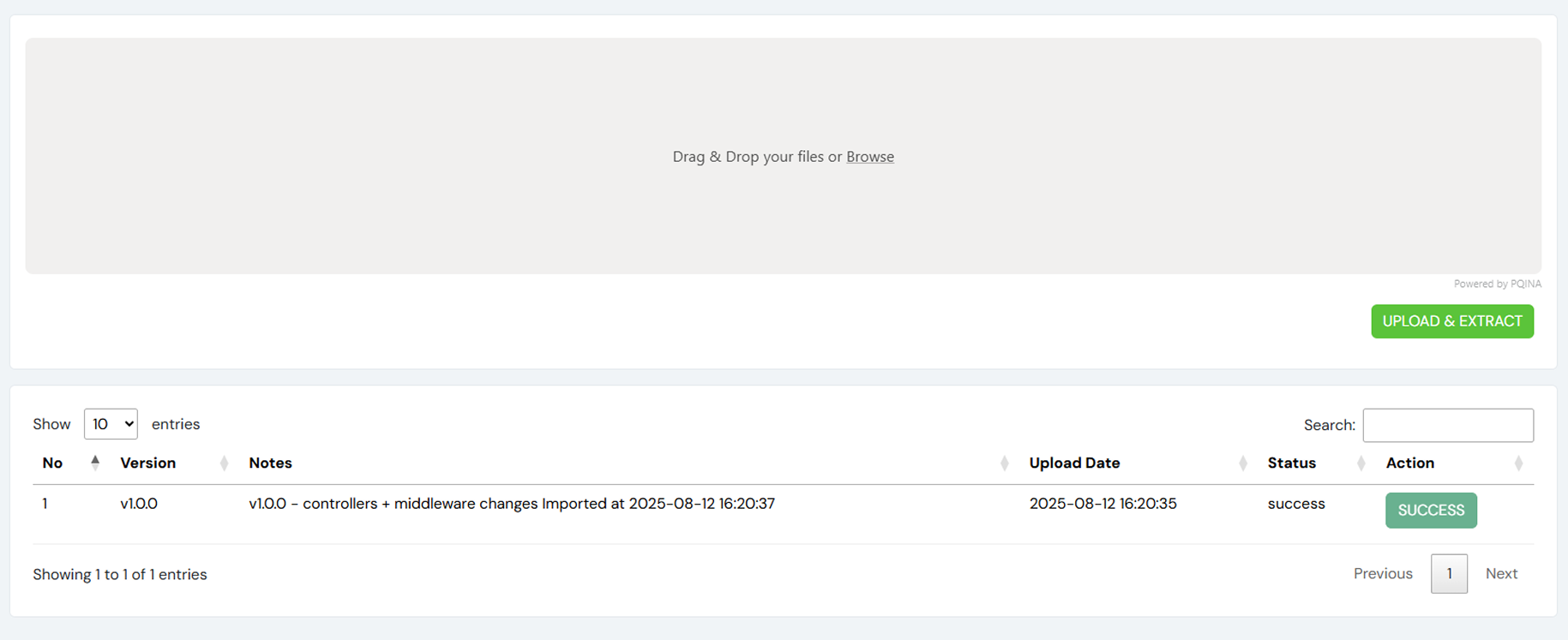 Display the most recent version, basic instructions, and an Upload & Extract button.